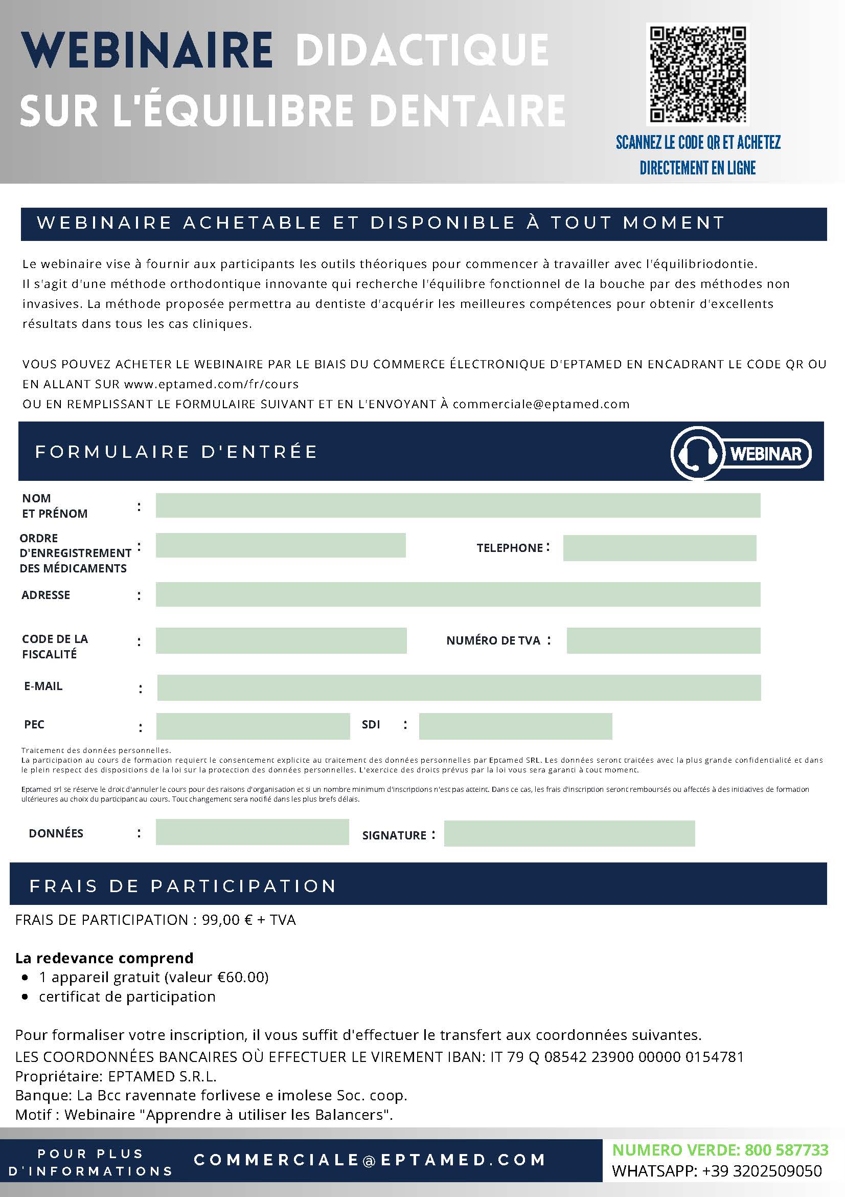 Le webinaire vise à fournir aux participants les outils théoriques pour commencer à travailler avec la dentisterie d’équilibre.