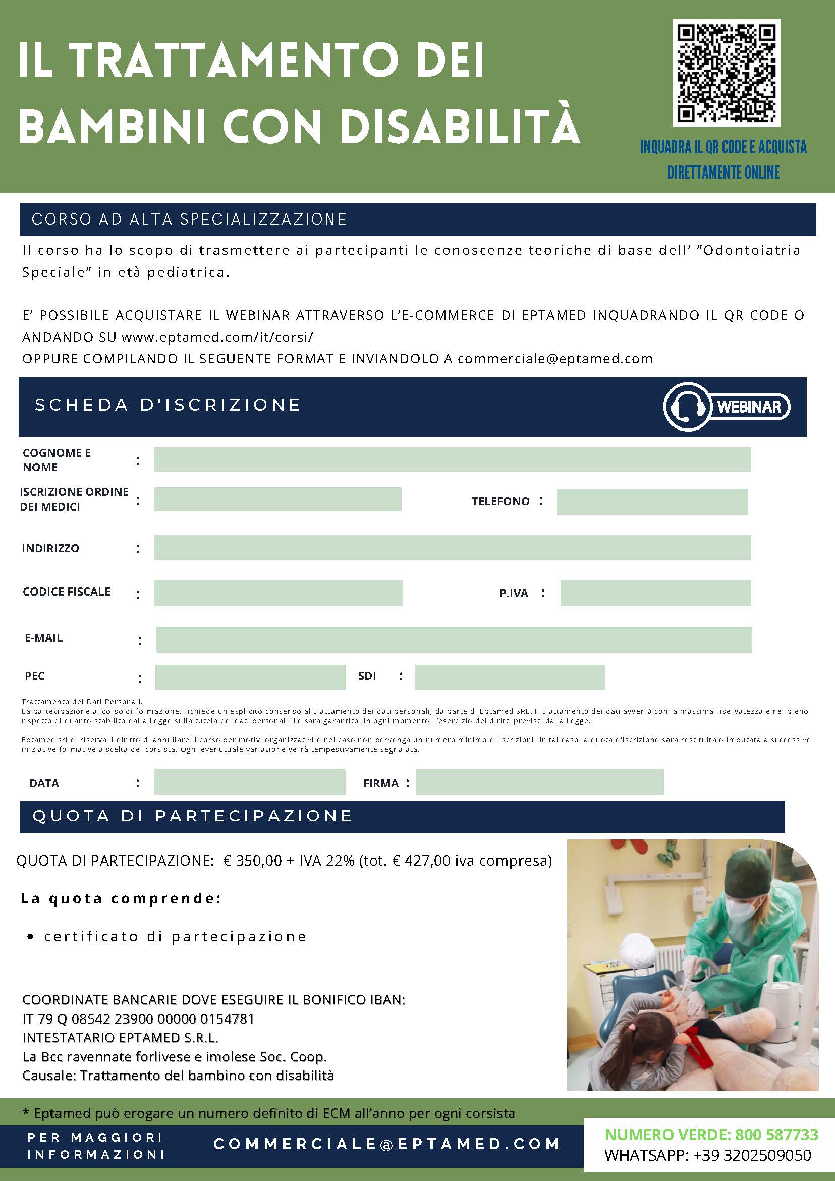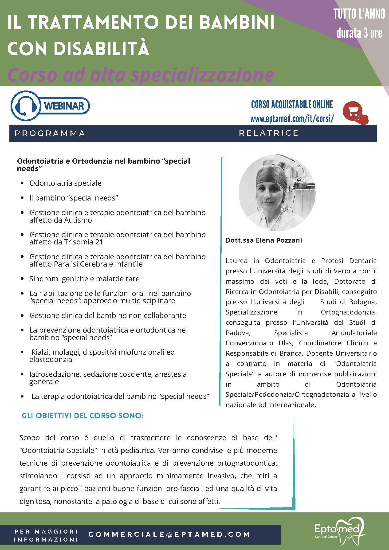 Scopo del corso è quello di trasmettere le conoscenze di base dell’ ”Odontoiatria Speciale” in età padiatrica. Verranno condivise le più moderne tecniche di prevenzione odontoiatrica e di prevenzione ortognatodontica, stimolando i corsisti ad un approccio minimamente invasivo, che miri a garantire ai piccoli pazienti buone funzioni oro-facciali ed una qualità di vita dignitosa, nonostante la patologia di base di cui sono affetti.